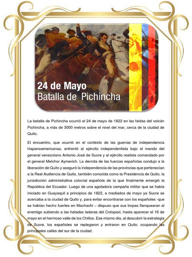 En el Parte de la Batalla del Pichincha, el Gral. Sucre dice: “Los resultados de la