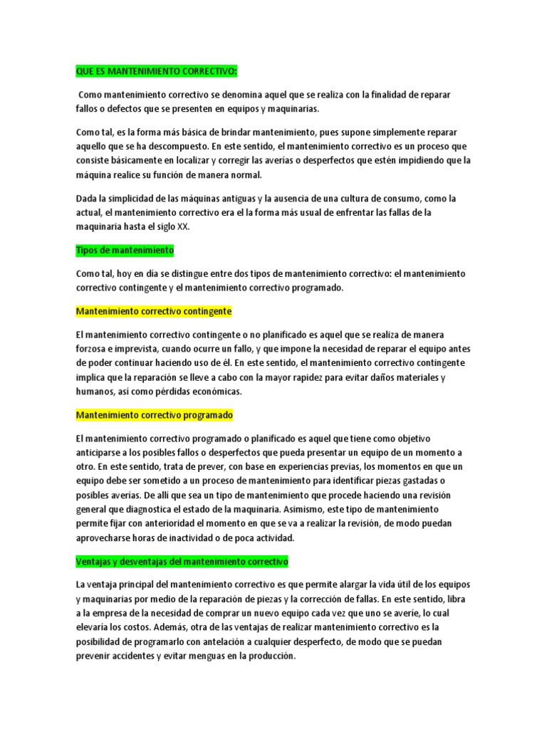 QUE ES MANTENIMIENTO CORRECTIVO: