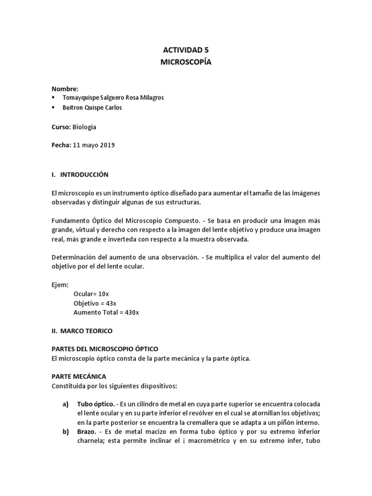 El microscopio óptico consta de la parte mecánica y la parte óptica.