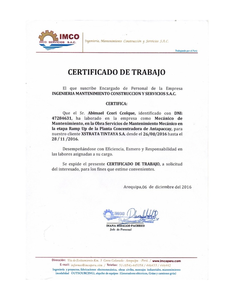 Que el Sr. Abimael Ccori Ccolque, identificado con D.N.I. N° 47284631,