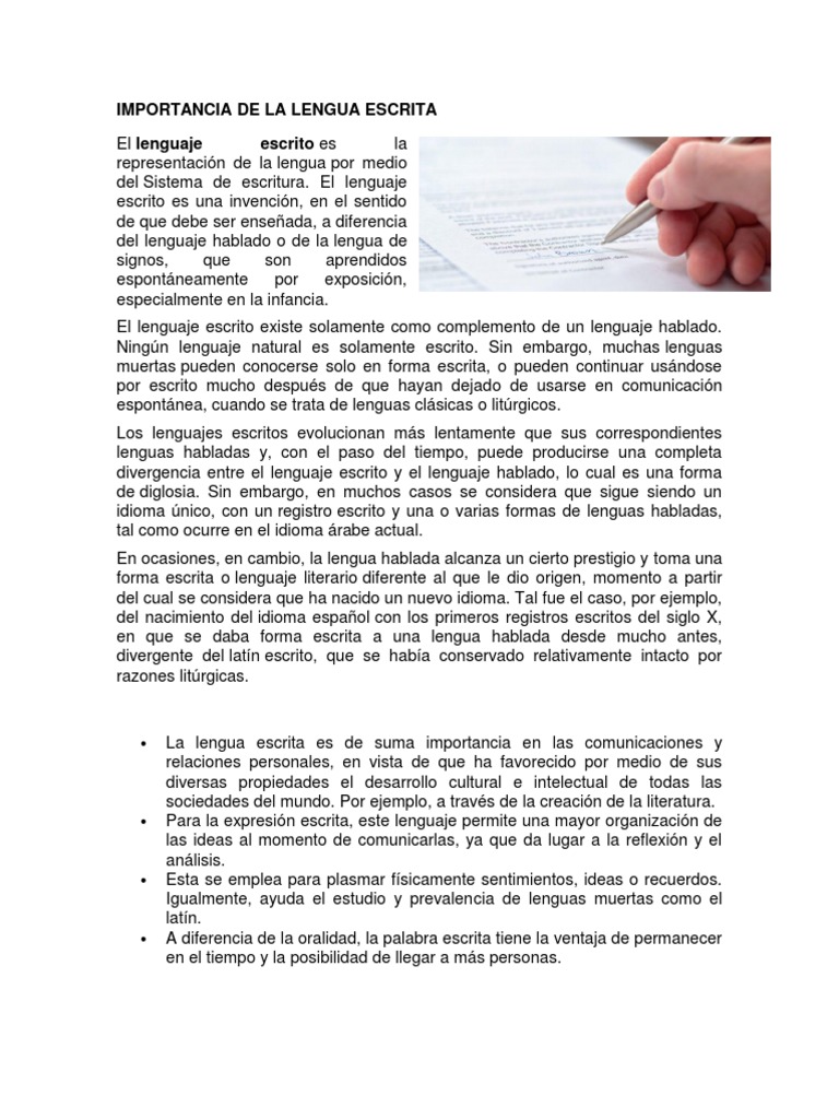 IMPORTANCIA DE LA LENGUA ESCRITA