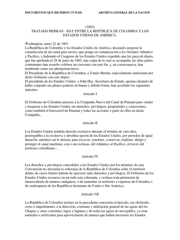 TRATADO HERRAN - HAY ENTRE LA REPÚBLICA DE COLOMBIA Y LOS