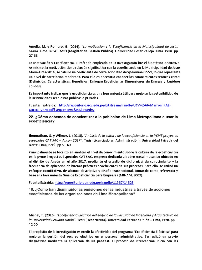 de ecoeficiencia en el Perú. Se debe indicar que fue necesario aplicar la herramienta del Ministerio