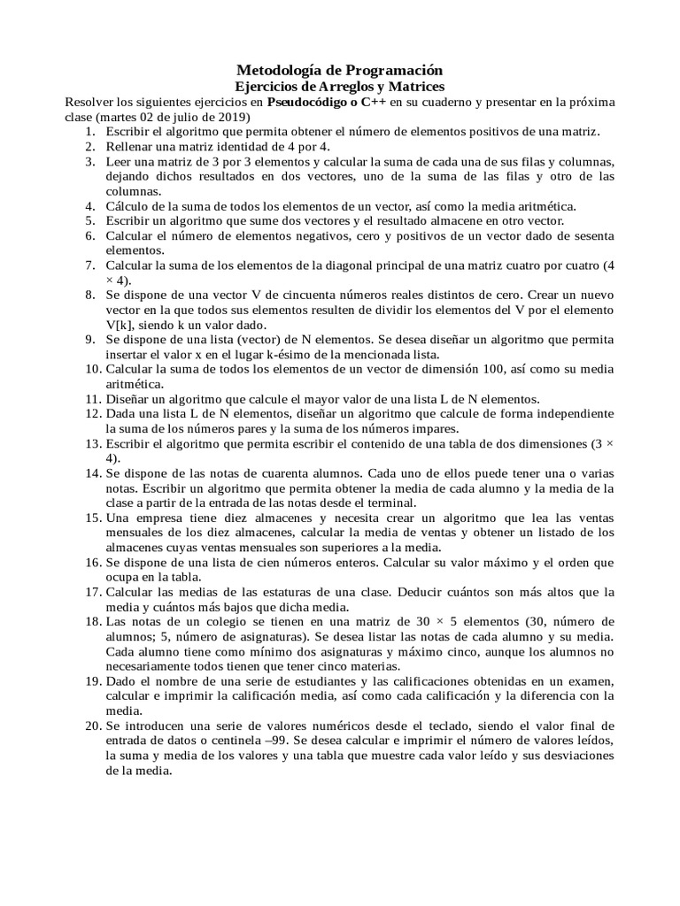 1. Escribir el algoritmo que permita obtener el número de elementos positivos de una matriz.