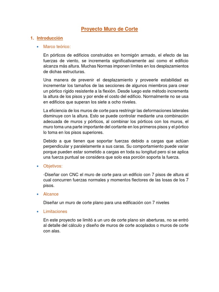 Diseñar un muro de corte plano para una edificación con 7 niveles