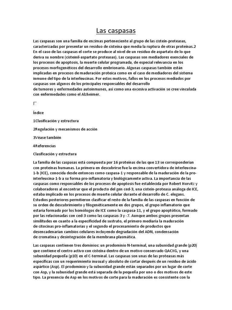 deriva su nombre (cisteinil-aspartato proteasas). Las caspasas son mediadores esenciales de