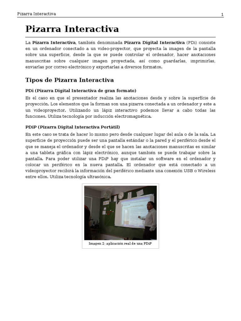 La Pizarra Interactiva, también denominada Pizarra Digital Interactiva (PDi) consiste