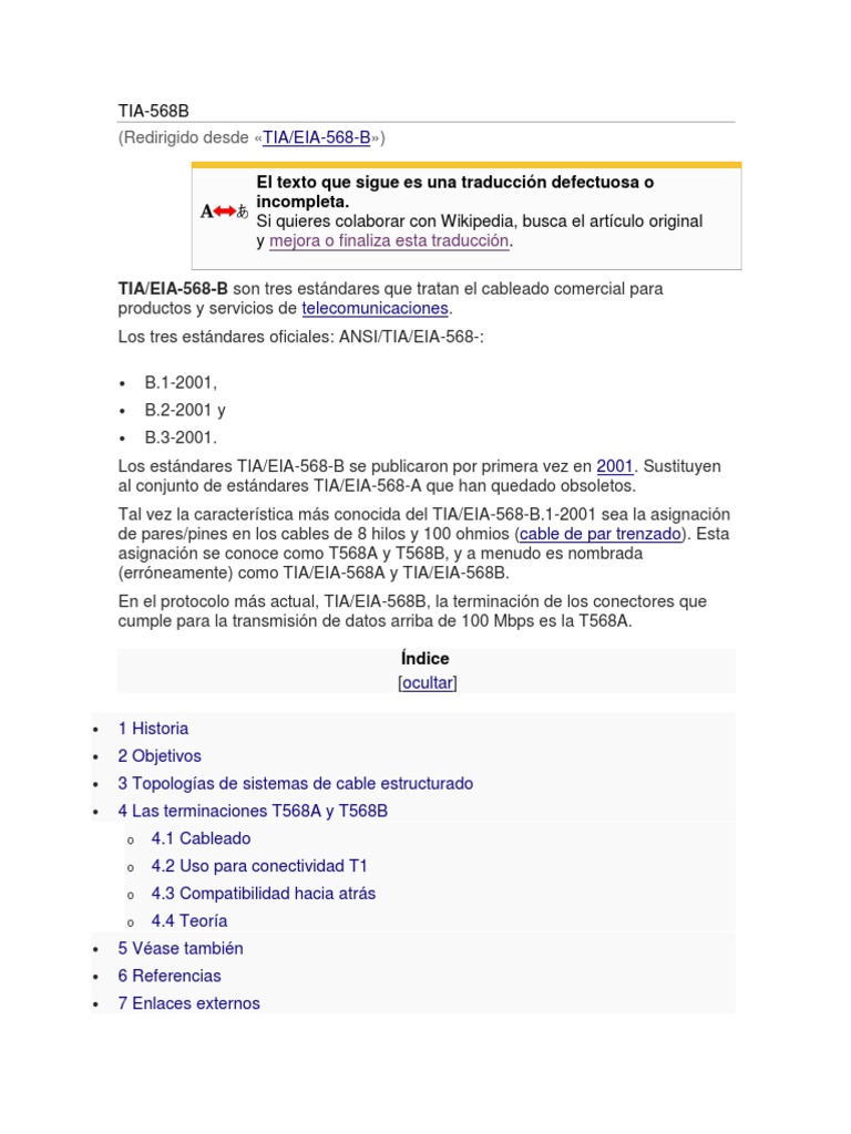 Los estándares TIA/EIA-568-B se publicaron por primera vez en 2001. Sustituyen