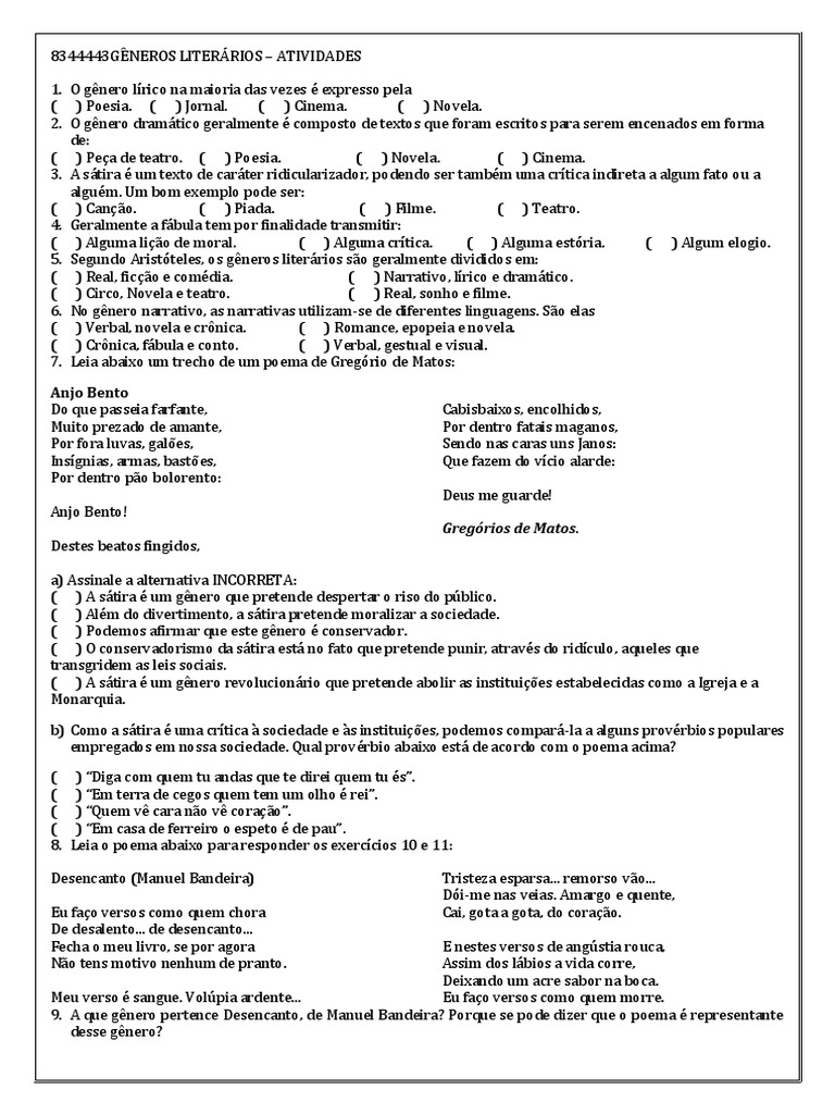 8344443GÊNEROS LITERÁRIOS – ATIVIDADES