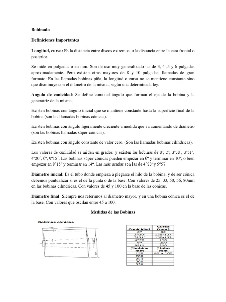 Diámetro inicial: Es el tubo donde empieza a plegarse el hilo de la bobina, y de ser cónica