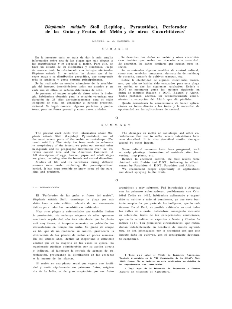 t u r a , P . C . E . A . , Lima. pág. 41. Marzo 1959. Pickleworms by Dusting". p. 49, 1942. (original no con-