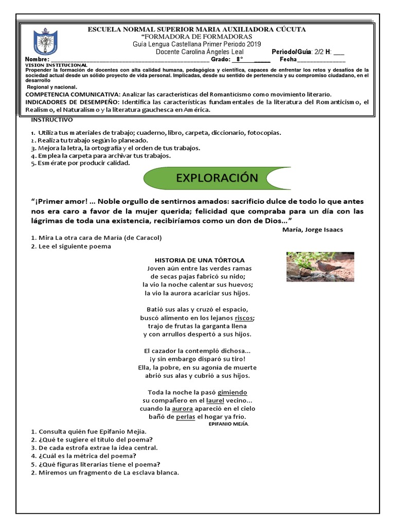 8. Escribir dos estrofas de un poema romántico en el que exalten su identidad y los rasgos de su región. Tenga en cuenta las