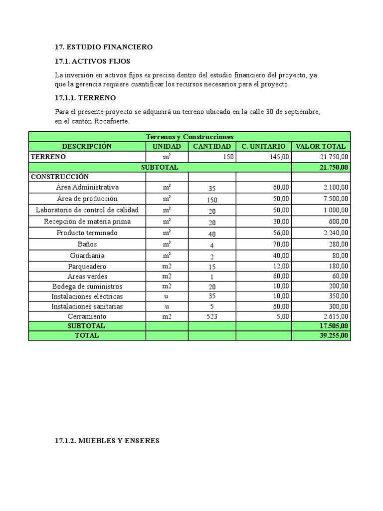 La inversión en activos fijos es preciso dentro del estudio financiero del proyecto, ya