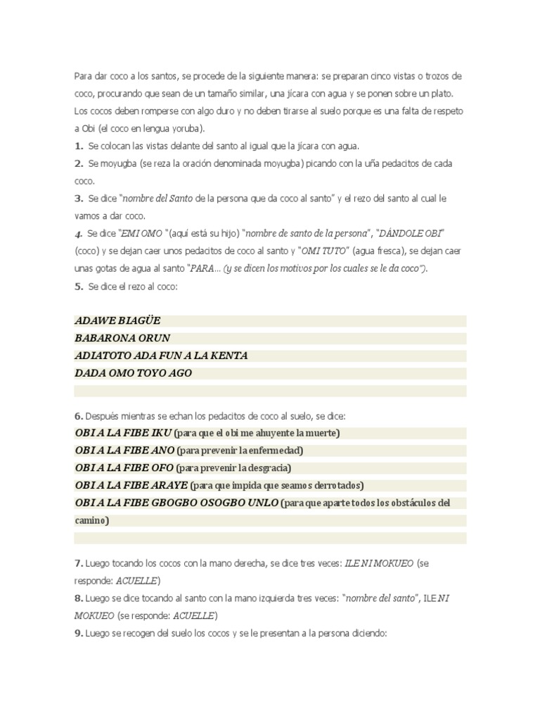 (coco) y se dejan caer unos pedacitos de coco al santo y “OMI TUTO” (agua fresca), se dejan caer