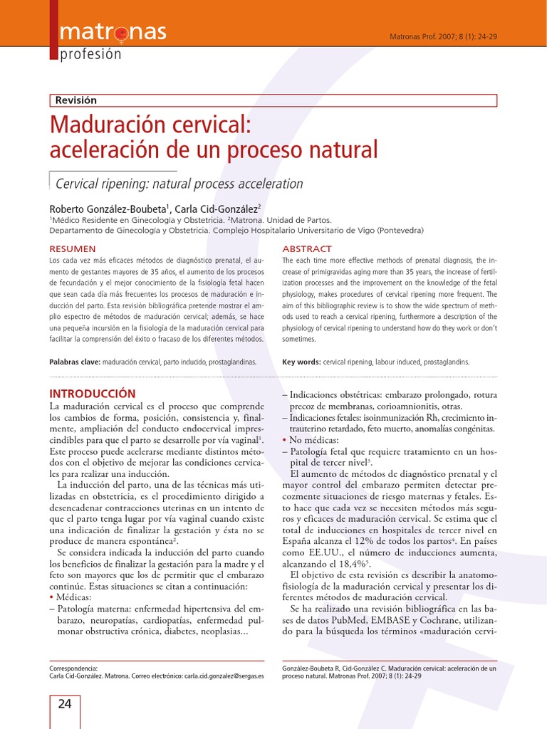 Palabras clave: maduración cervical, parto inducido, prostaglandinas. Key words: cervical ripening, labour induced, prostaglandins.