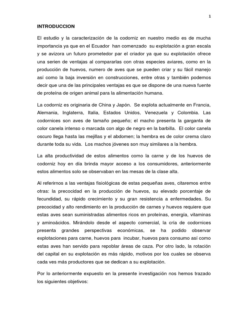 1. BISSONI, E. (1993): cría de la codorniz, 1ra ed, pág 9 – 19, Buenos Aires,