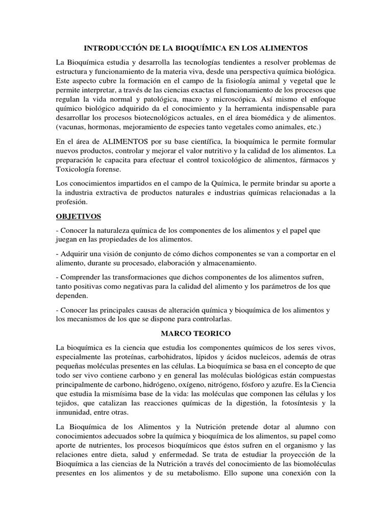 INTRODUCCIÓN DE LA BIOQUÍMICA EN LOS ALIMENTOS
