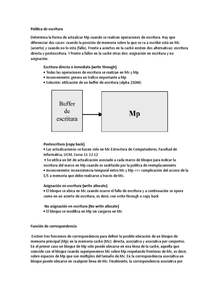 (acierto) y cuando no lo está (fallo). Frente a aciertos en la caché existen dos alternativas: escritura