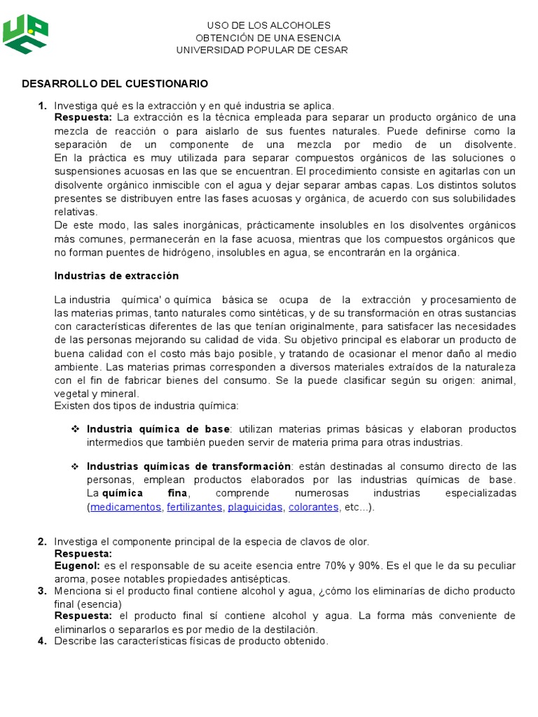 5. ¿cuál es la función del alcohol? Explica por qué alcohol y no éter.