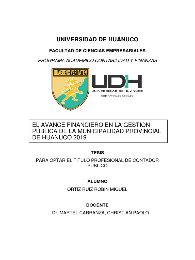 ELAVANCEFINANCIERO EN LA GESTION PÚBLICA DE LA MUNICIPALIDAD DE HUÁNUCO. 2019