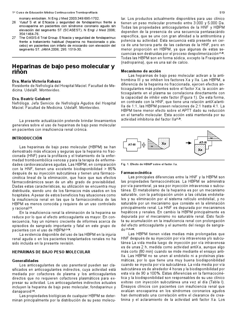 Residente de Nefrología del Hospital Maciel. Facultad de Me- diferencia de la heparina no fraccionada, ejercen efectos an-
