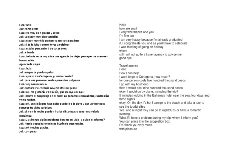 Luza: estaba pensando ir de vacaciones I was thinking of going on holiday