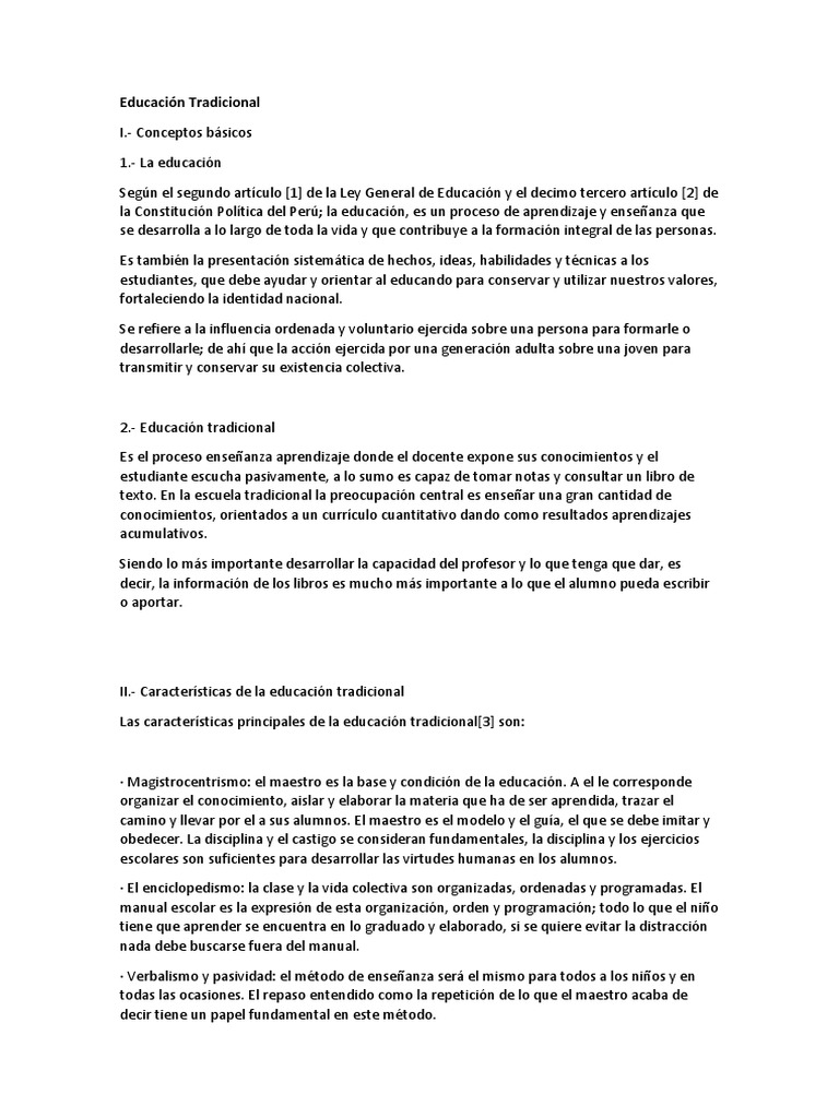 II.- Características de la educación tradicional