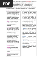 interior del traje, varios tipos de mantas las cuales son las siguiente: Primero la kipucha que es una manta de tamaño