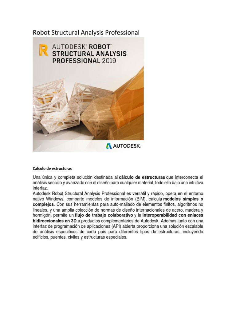concreto, Autodesk Robot es el software internacional por excelencia. Autodesk Robot incluye