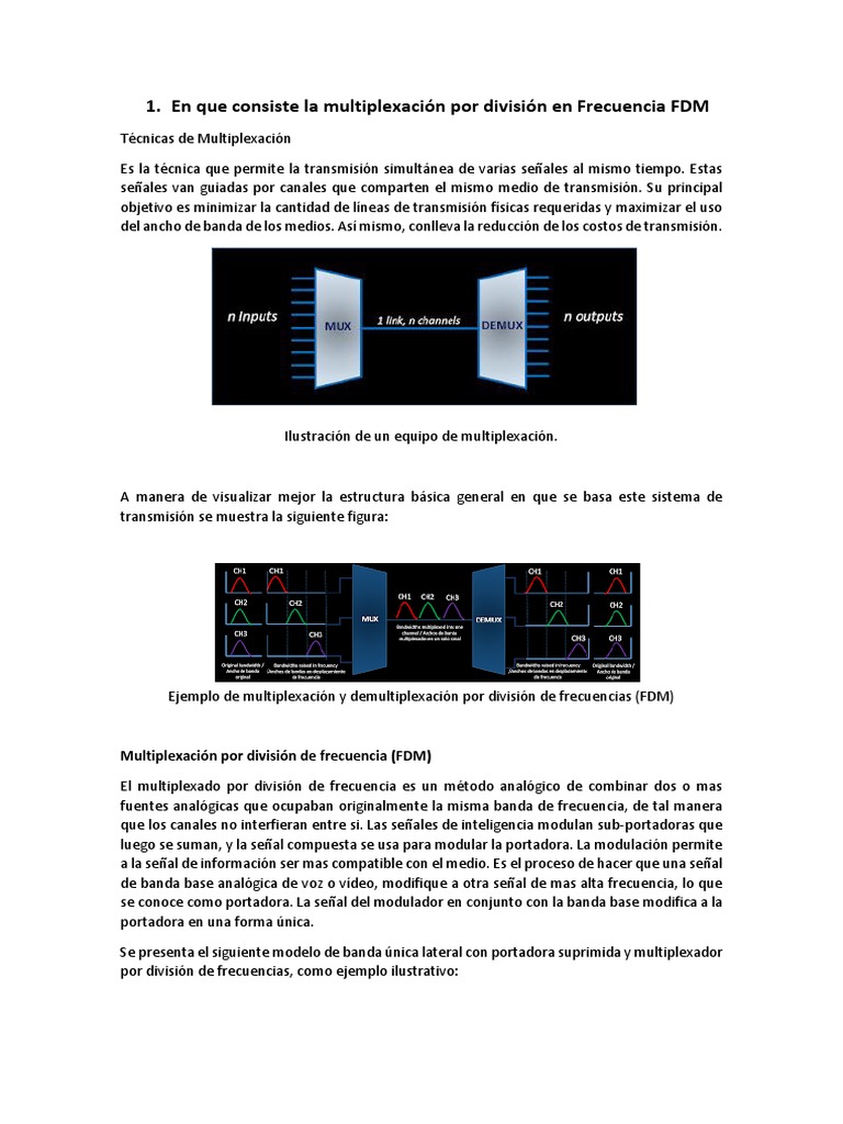 En que consiste la multiplexación por división en Frecuencia FDM