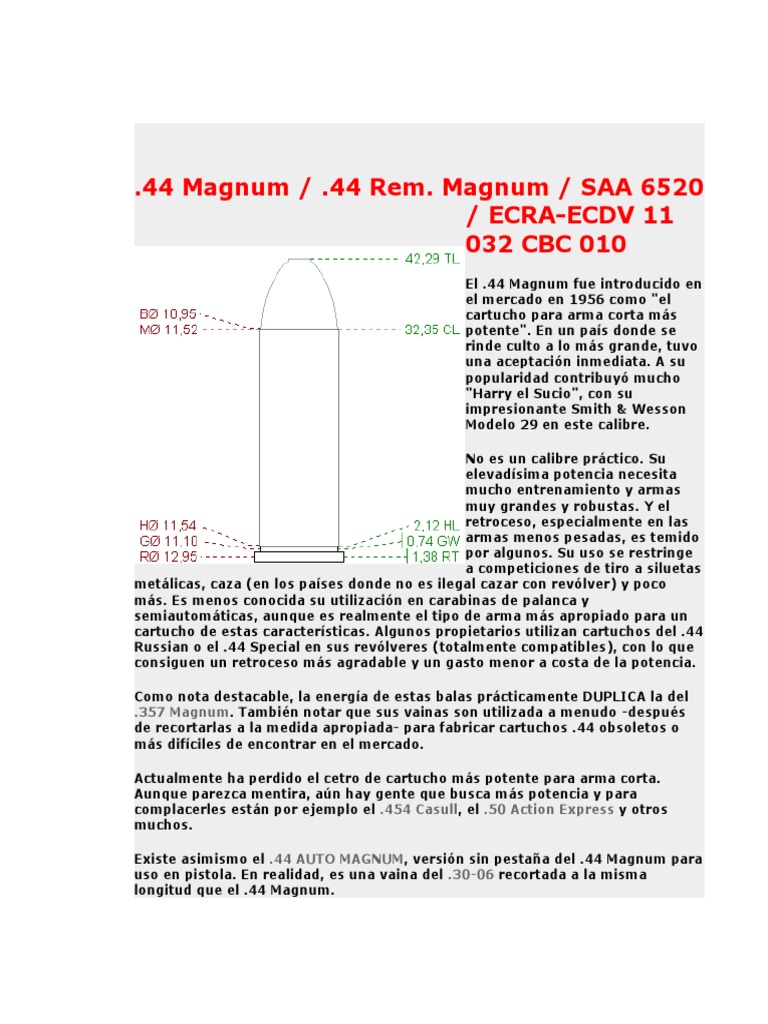 calibre distinto dada su incompatibilidad con las armas del .44 Magnum.