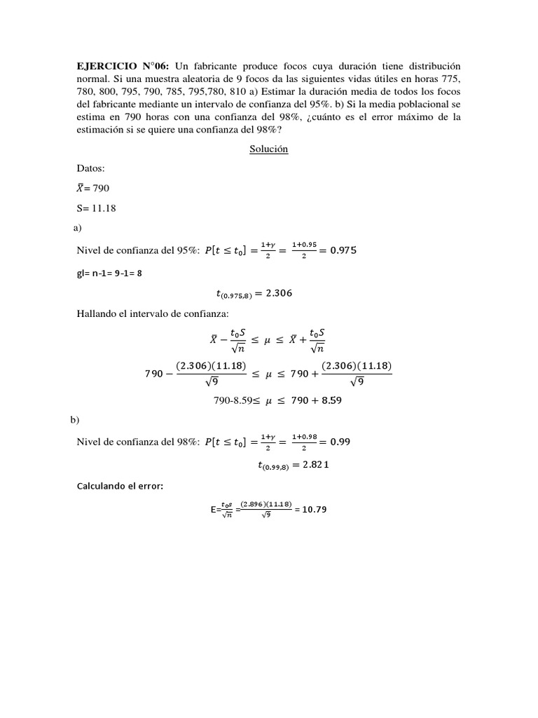 normal. Si una muestra aleatoria de 9 focos da las siguientes vidas útiles en horas 775,