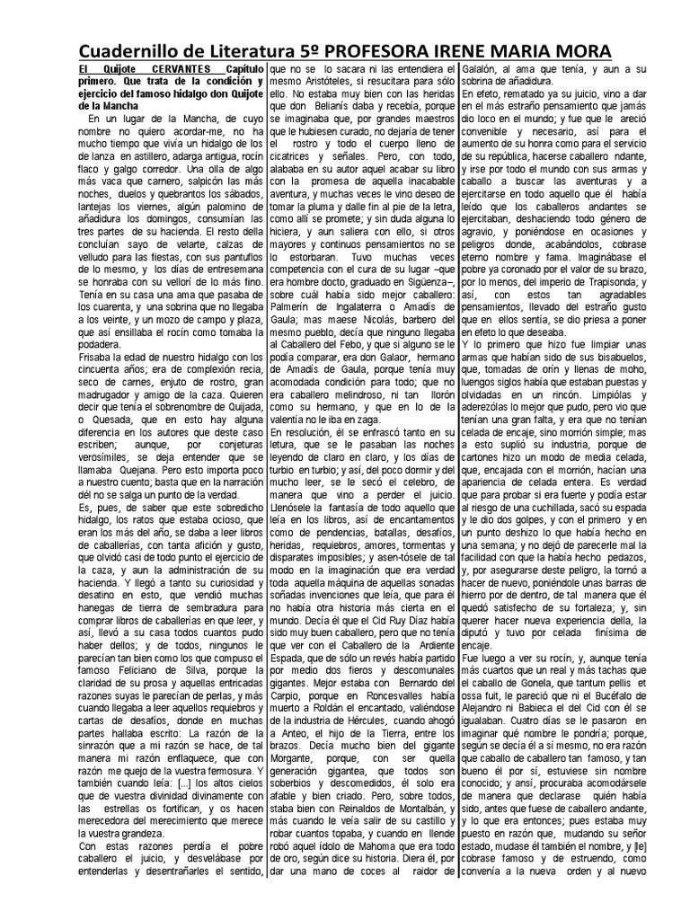 El Quijote CERVANTES Capítulo que no se lo sacara ni las entendiera el Galalón, al ama que tenía, y aun a su