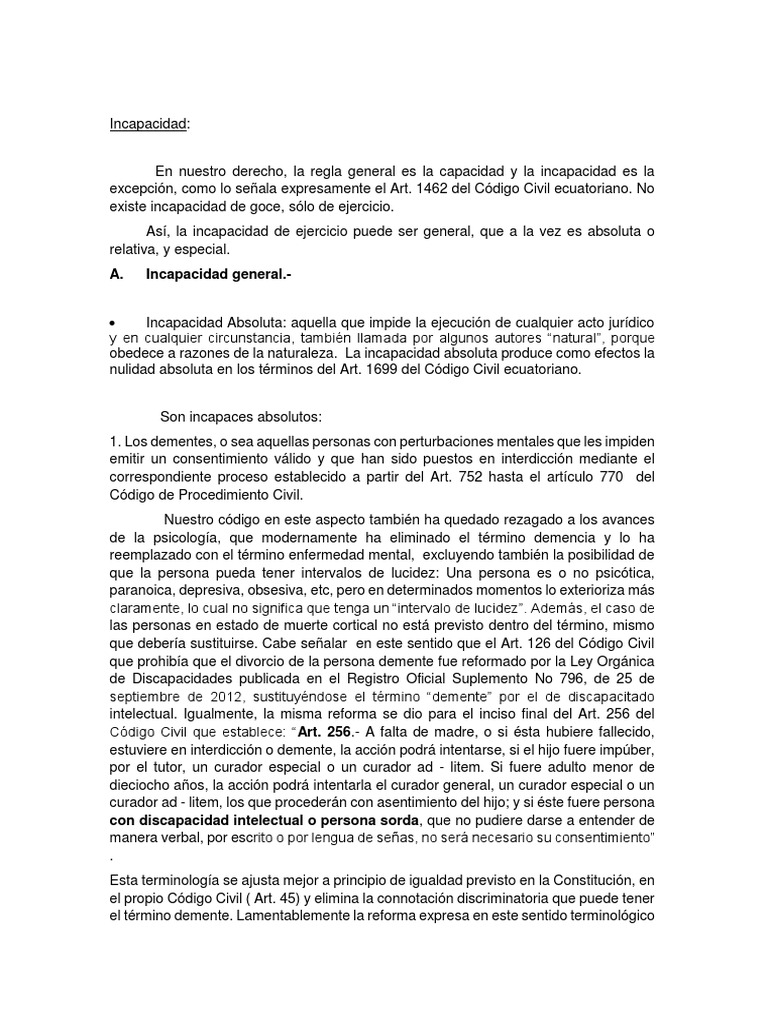 determinadas incapacidades, como son por ejemplo, las relativas a la curatela del