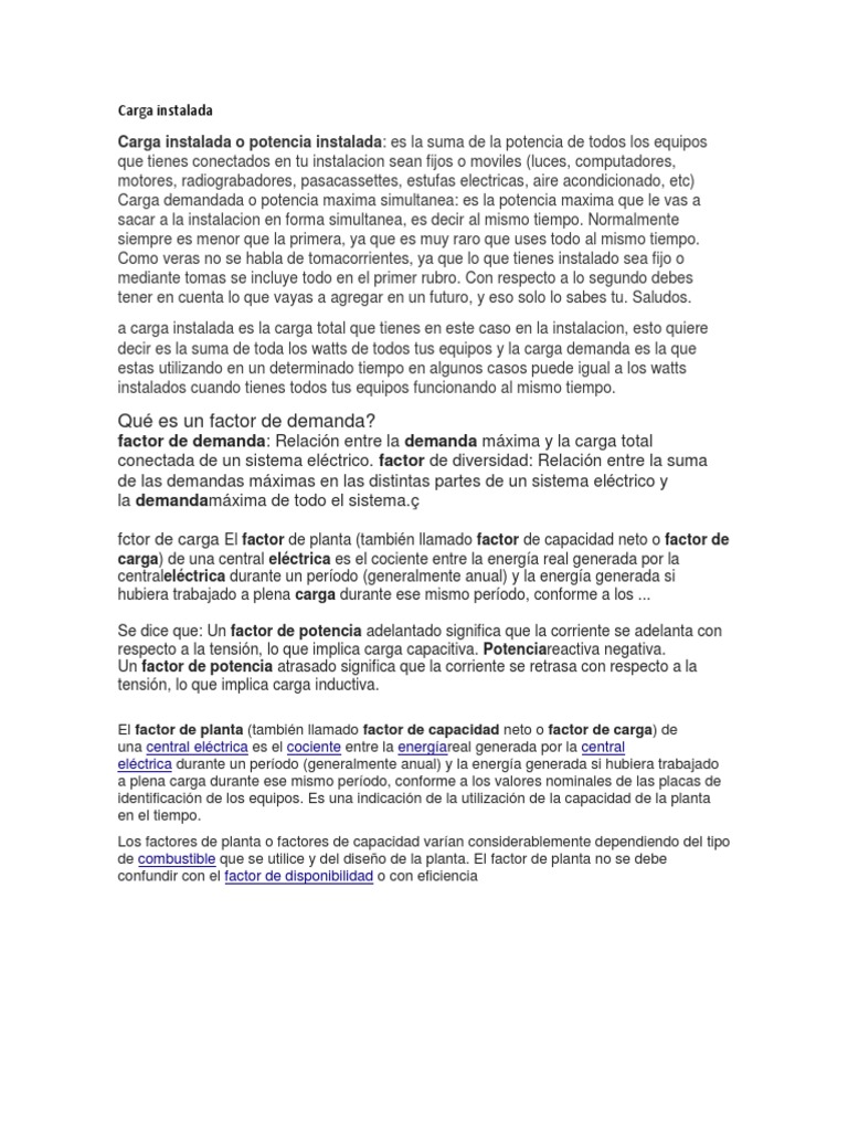 decir es la suma de toda los watts de todos tus equipos y la carga demanda es la que
