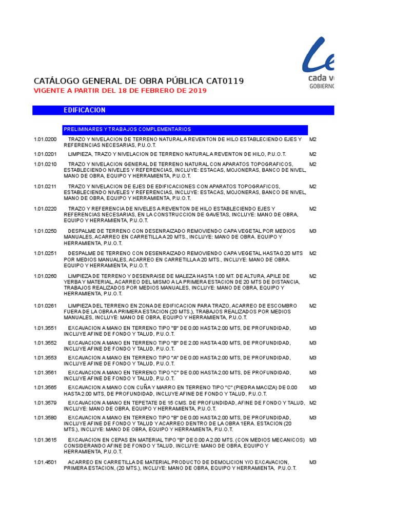 DE OBRA, EQUIPO Y HERRAMIENTA, P.U.O.T.