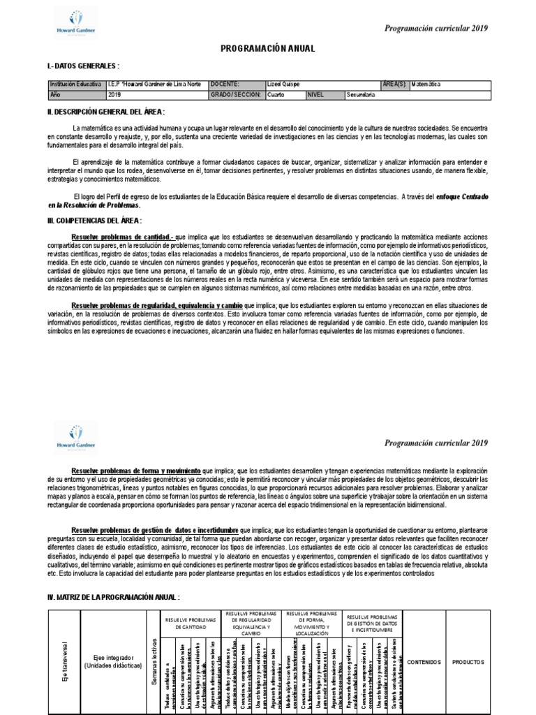 Programación curricular 2019