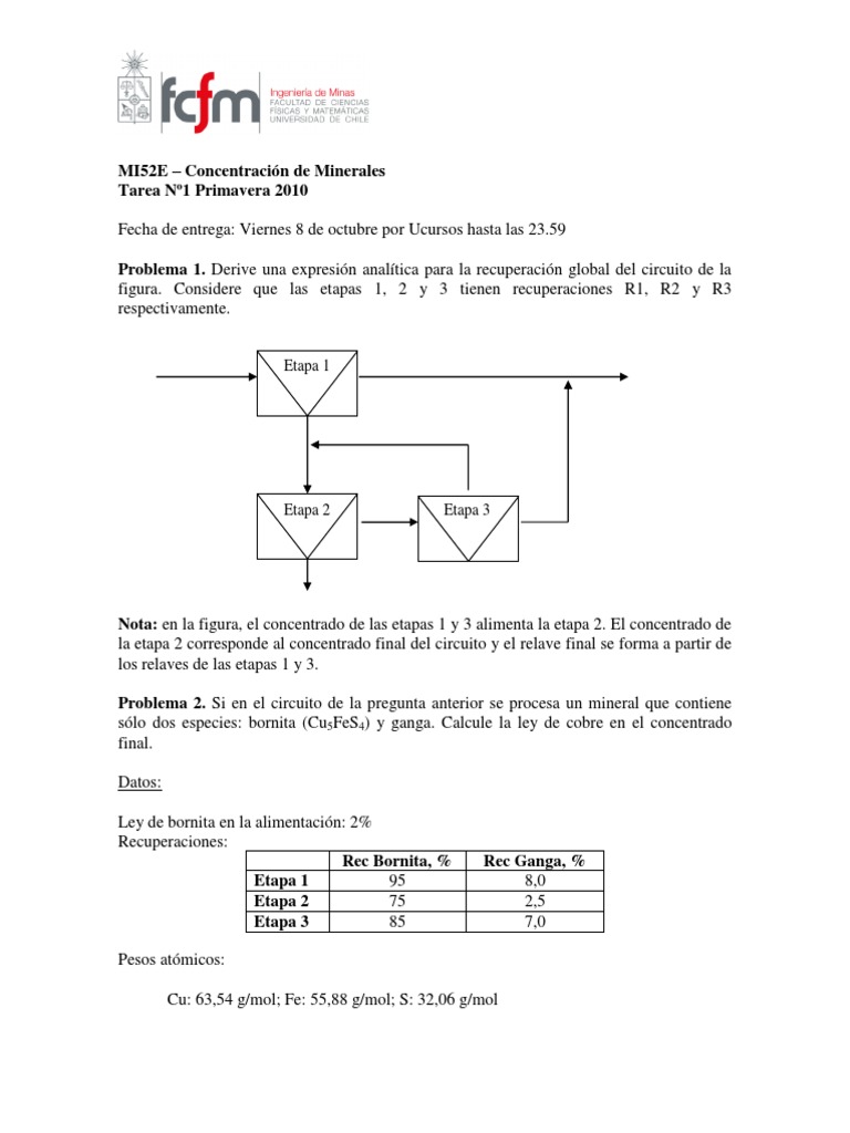 Problema 2. Si en el circuito de la pregunta anterior se procesa un mineral que contiene