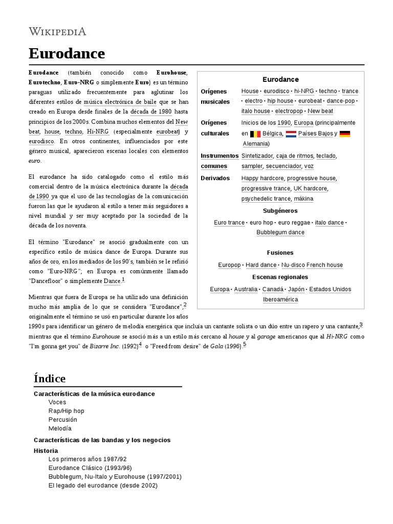 1. Elixic.de: Genrelexikon: Dance (http://www.elixic.de/Dance/) Click on "weiterlesen" to see full article. Requires