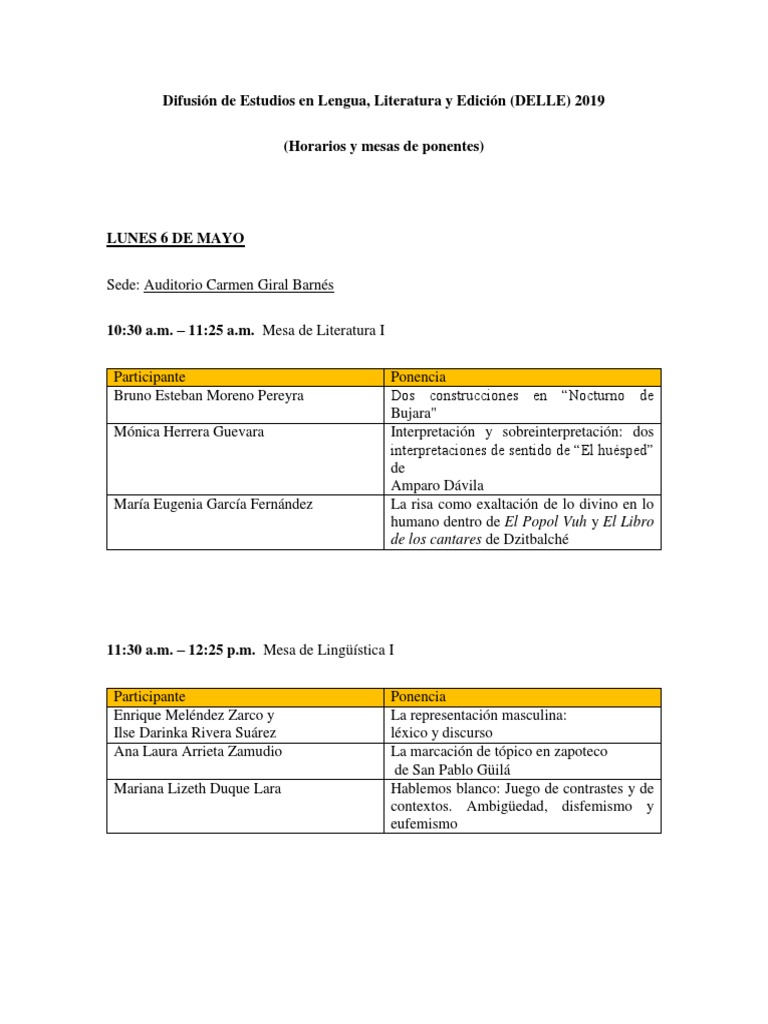 Difusión de Estudios en Lengua, Literatura y Edición (DELLE) 2019