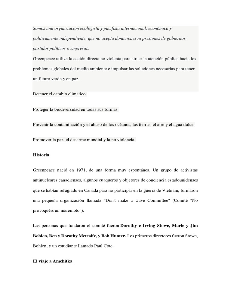 Greenpeace lucha por un mundo verde y en paz. Trabajamos para:
