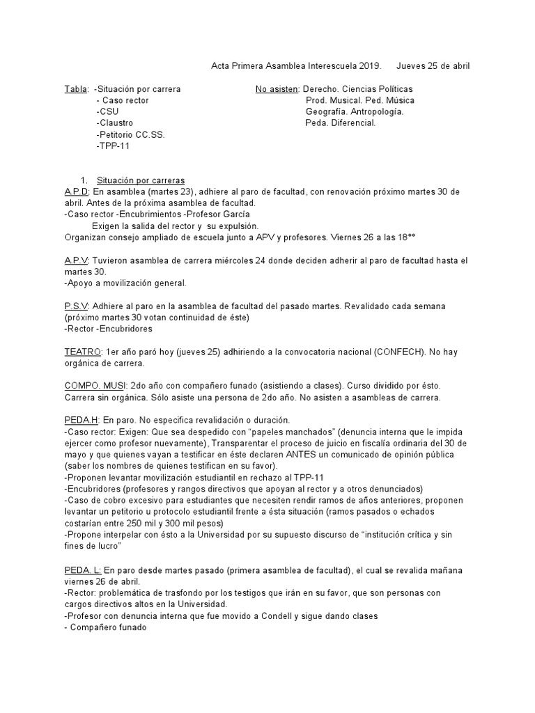 A.P.V: Tuvieron asamblea de carrera miércoles 24 donde deciden adherir al paro de facultad hasta el