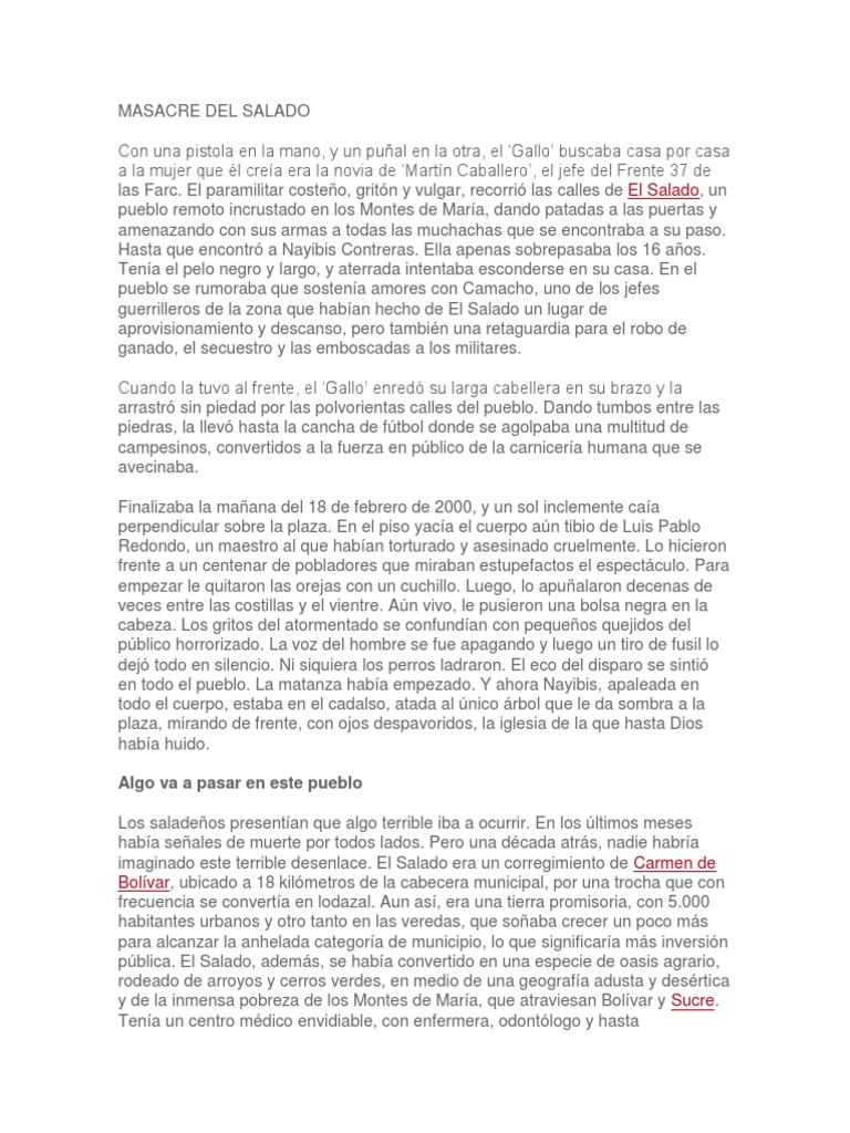imaginado este terrible desenlace. El Salado era un corregimiento de Carmen de