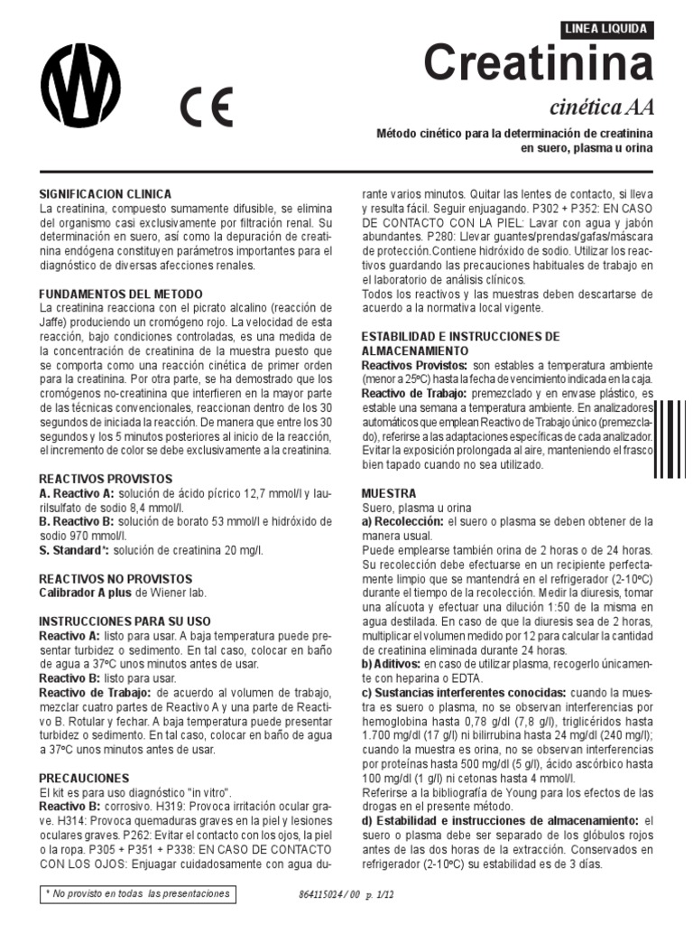 cromógenos no-creatinina que interfieren en la mayor parte Reactivo de Trabajo: premezclado y en envase plástico, es
