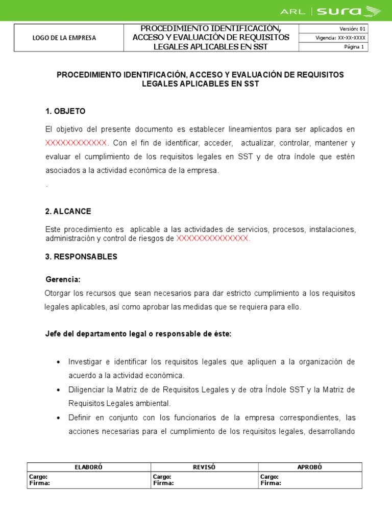 LOGO DE LA EMPRESA ACCESO Y EVALUACIÓN DE REQUISITOS Vigencia: XX-XX-XXXX
