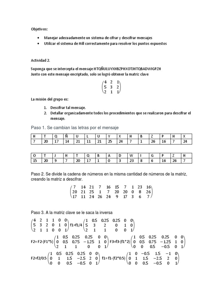 2. Detallar organizadamente todos los procedimientos que se realizaron para descifrar el