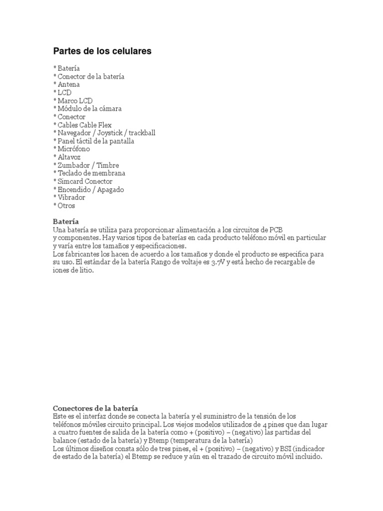 y componentes. Hay varios tipos de baterías en cada producto teléfono móvil en particular