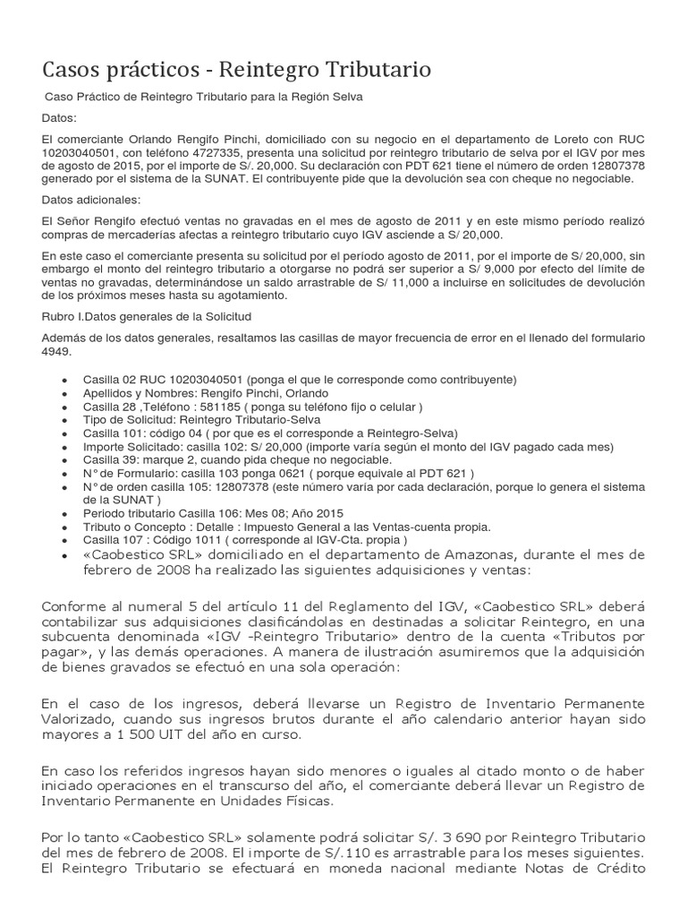 Caso Práctico de Reintegro Tributario para la Región Selva