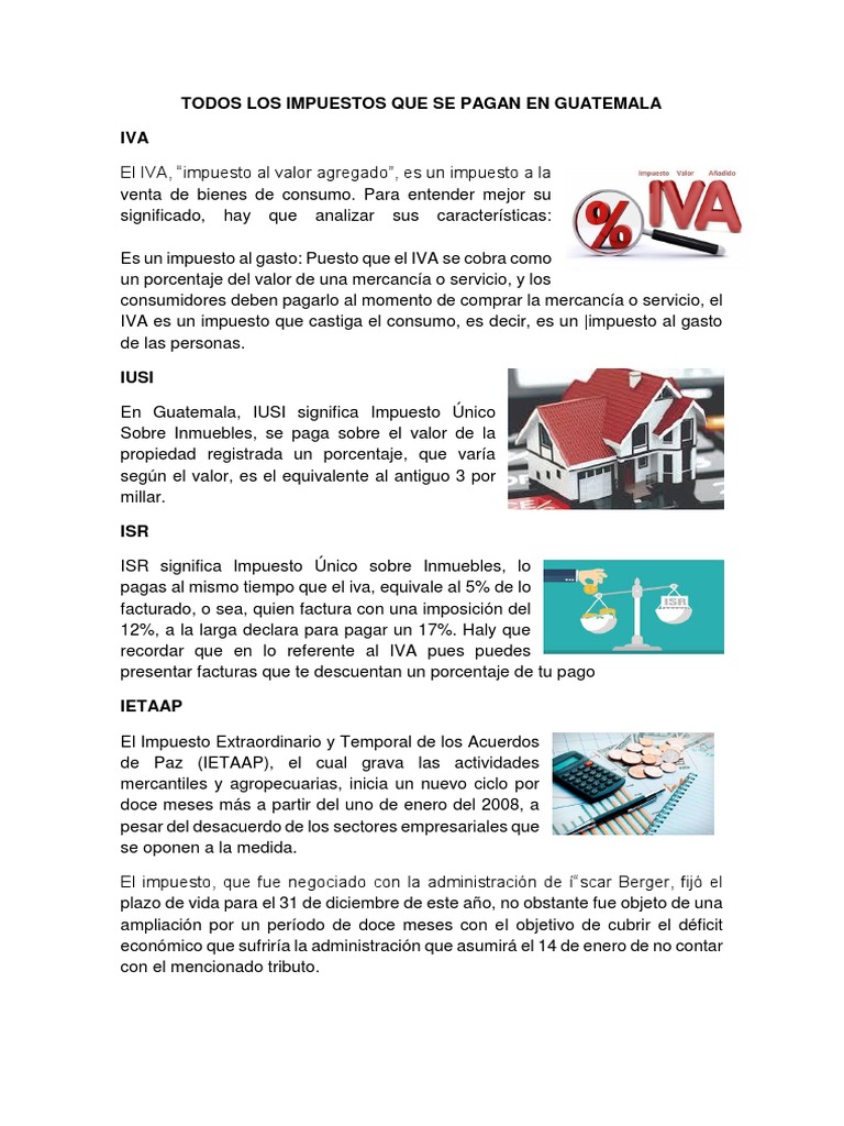 TODOS LOS IMPUESTOS QUE SE PAGAN EN GUATEMALA