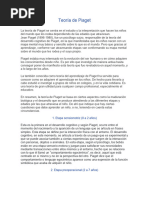 niños, dividiéndola en etapas, que él llamó: Estadios. La Teoría de Piaget supone la